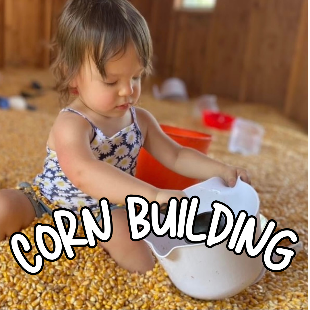 It’s even better than a sandbox! Our building is filled with loose corn and toys like pails and shovels.